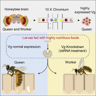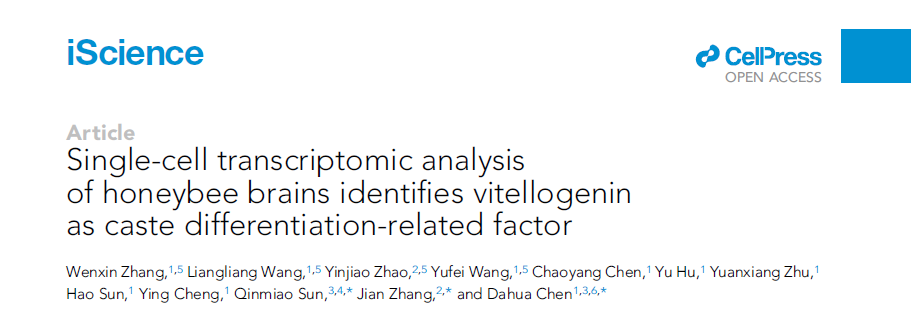 2022年7月15日, CellPress旗下iScience杂志正式发表云南大学生物医药研究院陈大华团队的研究论文“Single-cell transcriptomic analysis of honeybee brains identifies vitellogenin as caste differentiation-related factor”。该工作构建了三种雌性蜜蜂大脑单细胞转录组图谱,并且发现卵黄蛋白原基因(vg)在幼虫级型分化调控过程中发挥重要功能。我院章文信博士、硕士研究生王亮亮、博士研究生王宇飞、生科院赵银娇博士为文章共同第一作者,陈大华教授、生科院张建教授、中科院动物研究所孙钦秒研究员为文章的共同通讯作者。