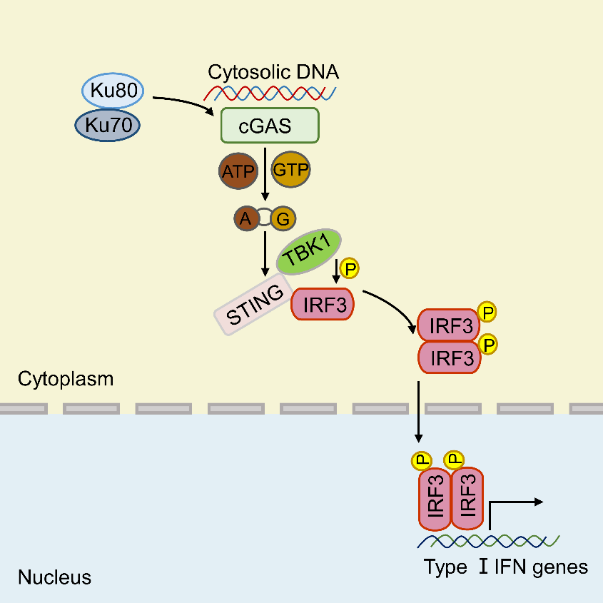图示:Ku蛋白通过促进cGAS与DNA的结合调控cGAS-STING信号通路